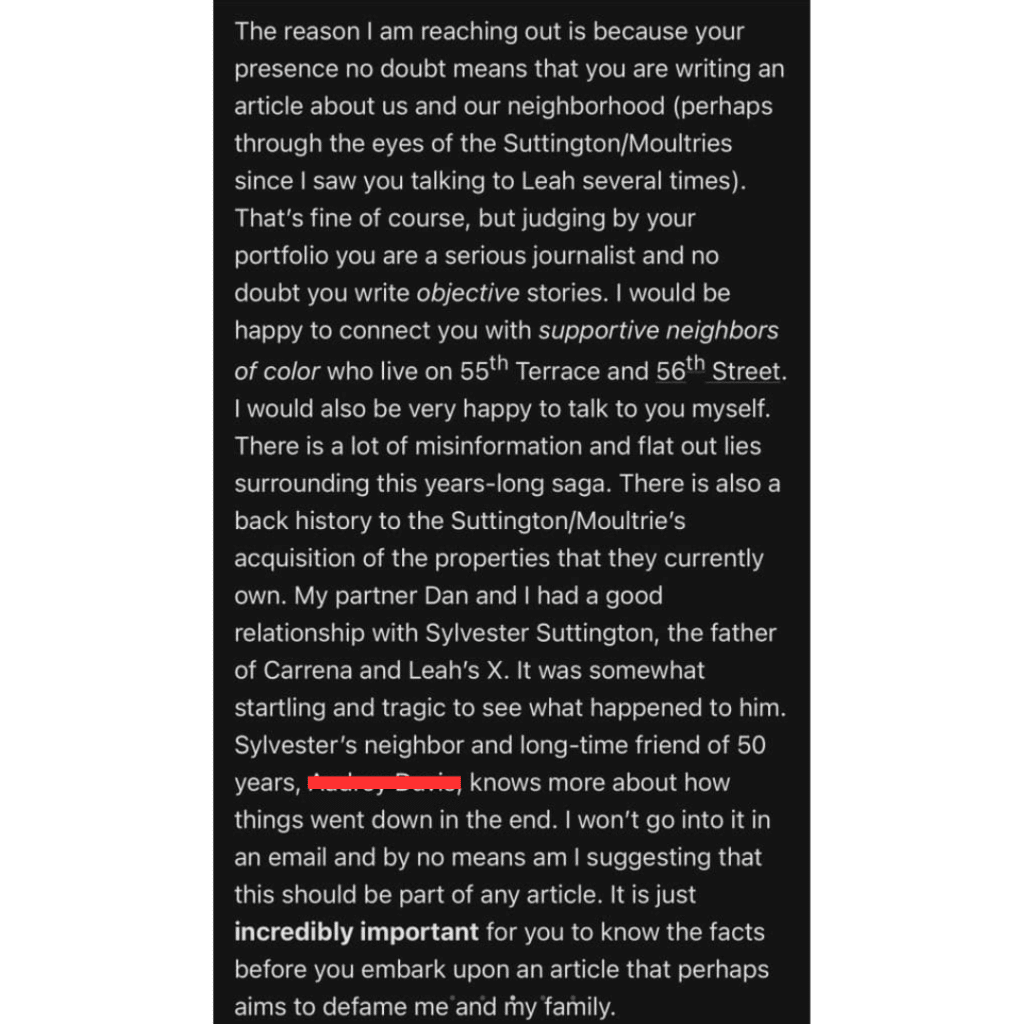 Last month, in an attempt to shift the open, yet quiet, narrative surrounding her character, Salvaggio emailed The Kansas City Defender. In that email, Salvaggio wrote, “I would be happy to connect you with supportive neighbors of color.” It was her attempt to use Black-led media to manipulate public perception in her favor.