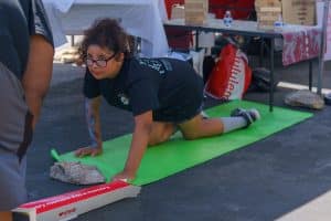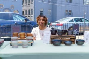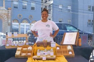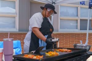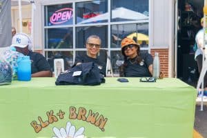 The block party included a live DJ,, games, and local art. People from varying backgrounds came together to celebrate with BLK + BRWN and other local businesses, including AIMWell Yoga, Sage Sol Ceramics, Moonlit Juicery, and EvalineEsthetics. Sponsors included BlaqOut and Andrews McMeel Publishing. Food vendor Sparker Kitchen grilled Philly cheesesteaks while Kinship Cafe served up the chai lattes.