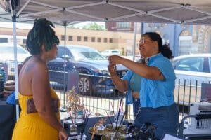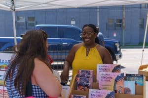 The celebration began at noon in BLK + BRWN’s parking lot on 39th Street. Despite the scorching heat and strong winds, hundreds of attendees showed up to support The Local Book Pusher, Cori Smith. Over 20 vendors filled up the lot space at 104 1/2 W 39th St., creating a vibrant marketplace of food, music, and community.
