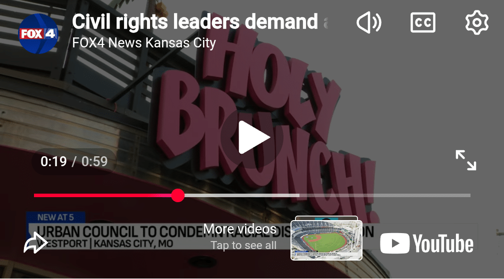 And here is what makes Mr. Stewart’s selective outrage so revealing: The Kansas City Defender was not the only outlet to feature Holy Brunch in coverage of this case. FOX4 News aired footage of the building with the chyron “Urban Council to Condemn” visible beneath the Holy Brunch sign.