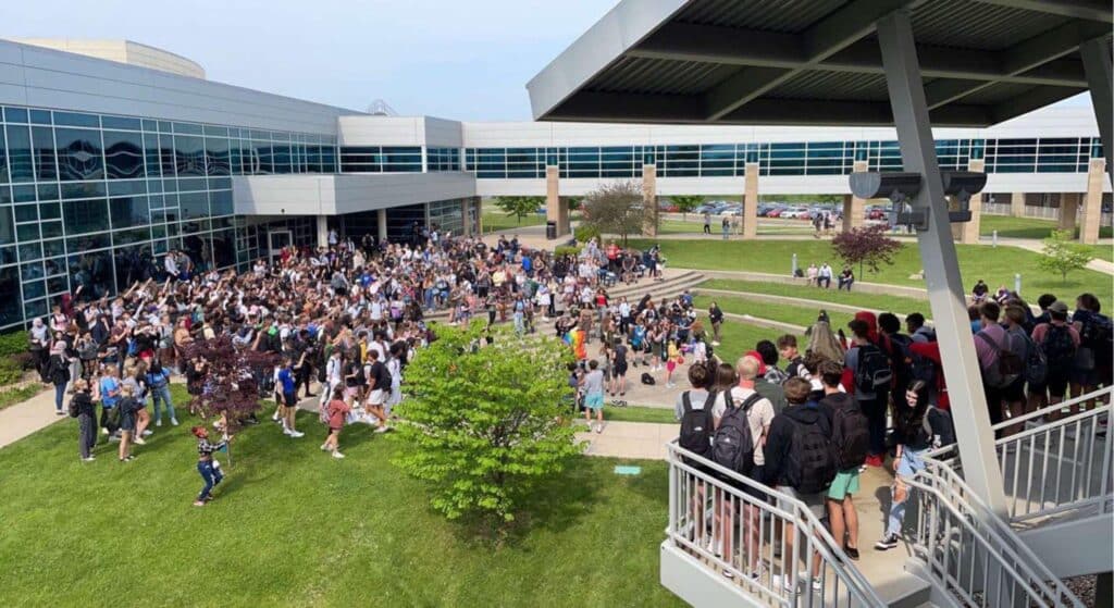 Lee’s Summit, MO – In a moment perhaps unprecedented in Lee’s Summit District history, a historic protest of over 700 students took to the school’s yard to peacefully demonstrate their opposition to the founding of white extremist group Turning Point USA.