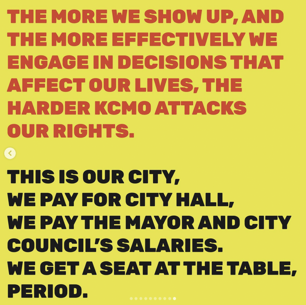 “Over the last year we’ve tracked a disturbing pattern: the more we show up and use our right to engage in public processes that affect our lives, the harder city leaders make it do so. We can’t ignore it anymore. From the downtown baseball stadium to the back room development deals ordinance, City Hall isn’t even trying to hide their intentions.” – KC Tenants