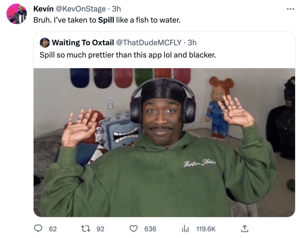 According to Tech Crunch, Spill’s team includes former Twitter design chief Dantley Davis, #OscarsSoWhite creator and DEI advocate April Reign and civil rights activist DeRay Mckesson.