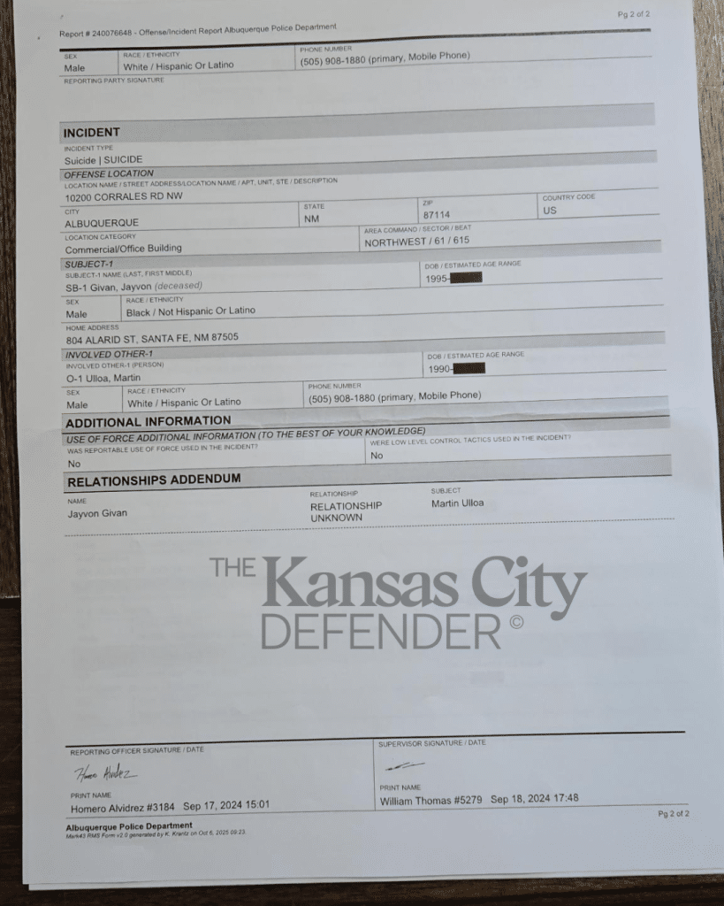 If you have information about Jayvon Givan’s time in Albuquerque, his activities in August and September 2024, or any interactions he had with Albuquerque police, please contact me at ryan@kansascitydefender.com.