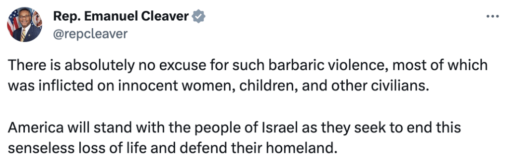 Thus, it was unsurprising that Congressman Cleaver would also utter similar sentiments, giving credence to American ‘leadership’ as ‘instrumental’ in ‘assisting Israel’s defense.’