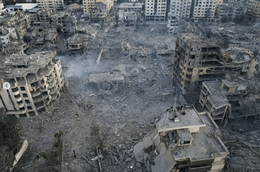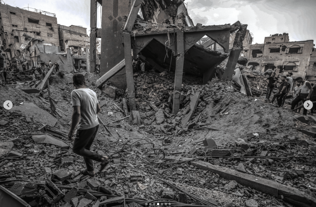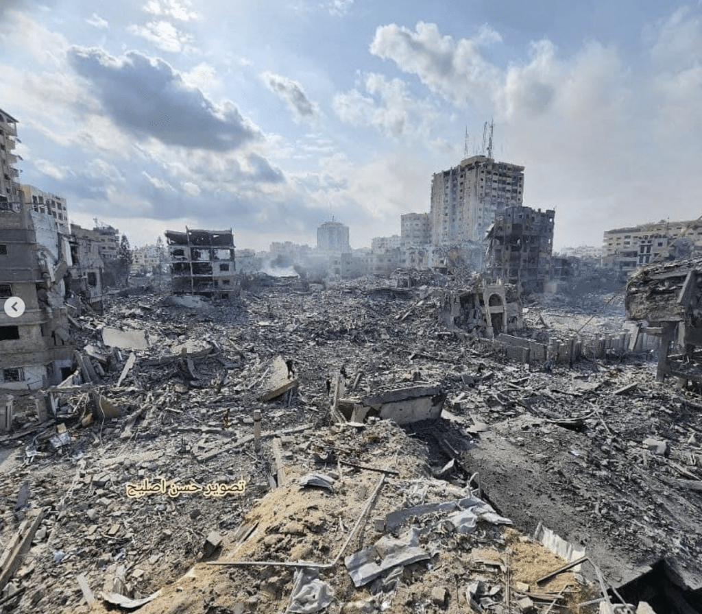 What you are supporting is this: entire Palestinian neighborhoods ferociously bombed with internationally-banned weapons, homes crumbled into heaps of concrete and despair – the very air thick with the aroma of scorched flesh and charred dreams, over 100 years of violent colonization; Mosques, once sanctuaries of spiritual refuge, now desecrated.