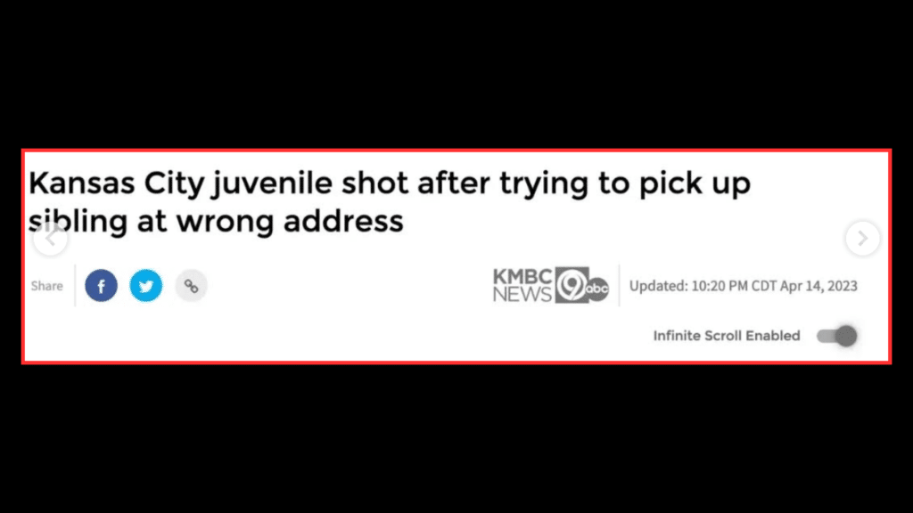“Kansas City Juvenile Shot After Trying to Pick Up Sibling At Wrong Address” was the headline. “Juvenile,” they called him. Or, perhaps more importantly, they conveniently left out the part about the child being Black, and the shooter being white. Worst of all, they conveniently left out Lester’s hate, his intent, and his racism.