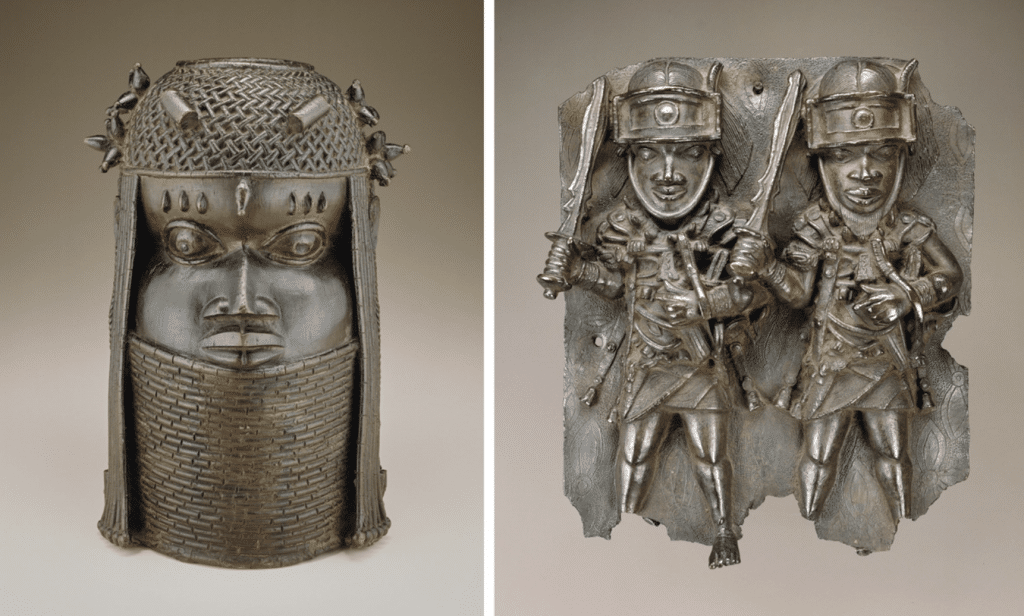 Benin Bronzes are not from the current-day country of Benin, but rather the once mighty but now-destroyed Kingdom of Benin which was located in what is now Benin City, Nigeria.