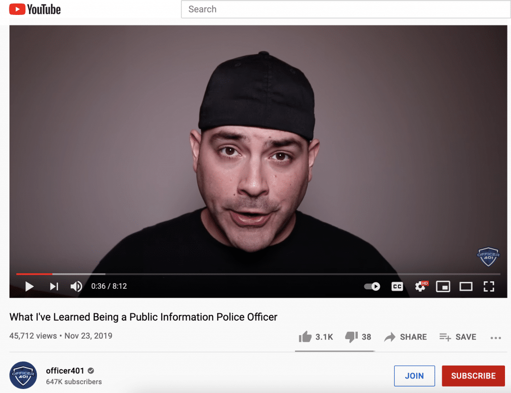 As paid members of the police force who report directly to the Chief, Public Information Officers create the narratives that most breaking news stories reproduce. In a vlog called “What I’ve Learned Being a Public Information Police Officer” (posted 11/23/19), a YouTuber called officer401 talks about the process of getting information to the public: