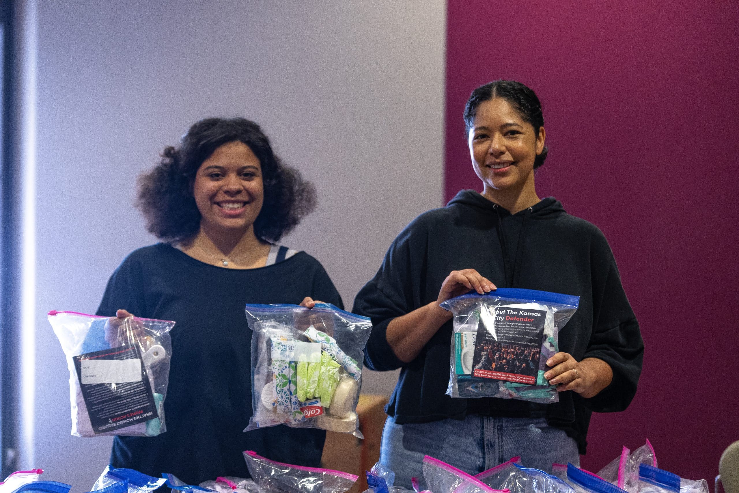 We also provided political education with every bag. Our Defender literature shows the more than $300 million Kansas City pours into KCPD every year while children in our neighborhoods go hungry, while families lose their housing, while the price of a bottle of body wash becomes the difference between dignity and humiliation.
